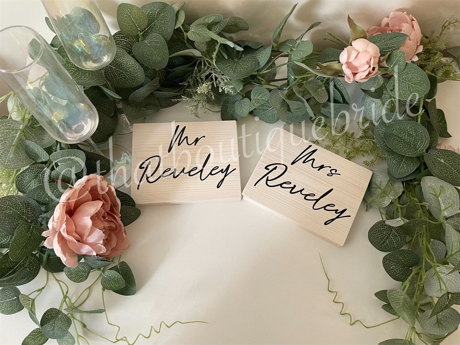 Couples WHITE wooden table signs, wedding reception table decor.