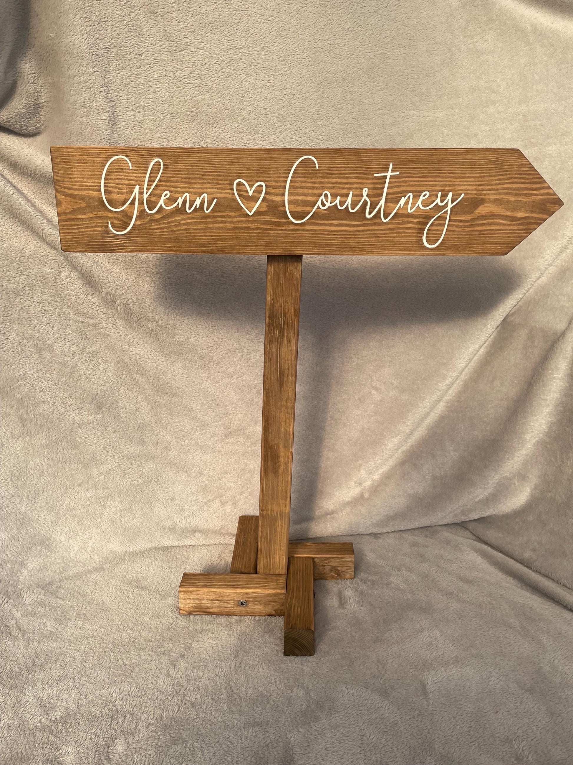 Personalised, RUSTIC, freestanding, wooden event direction sign.