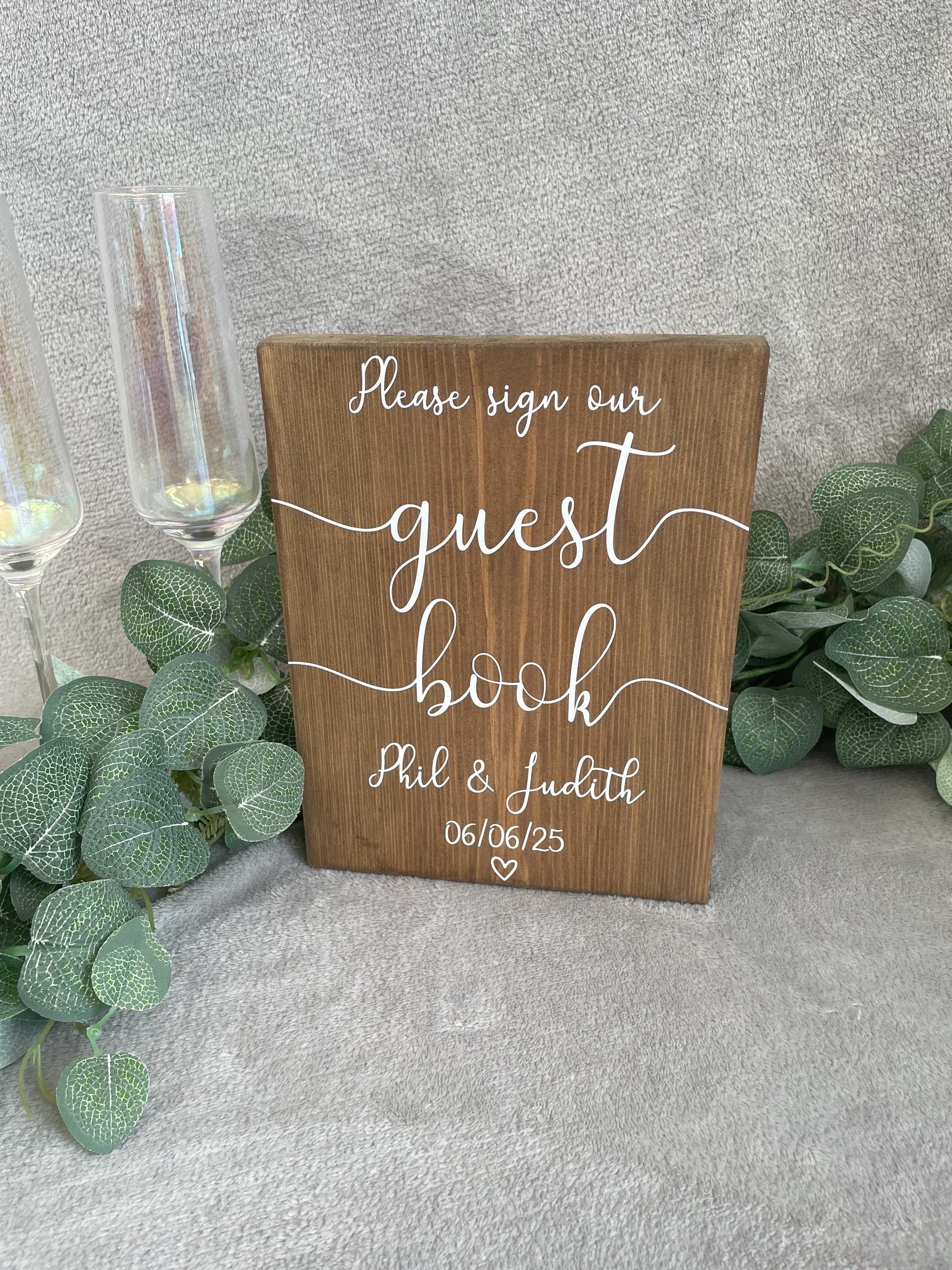 The sign is approx 15cm wide x 21cm tall x 2cm deep with a triangle foot on the reverse. Please note the sign will be reclining back slightly. I do accept custom orders so if you would like a different font please see my other listings and send me a message. The sign is fully customisable and I can leave names off if required.