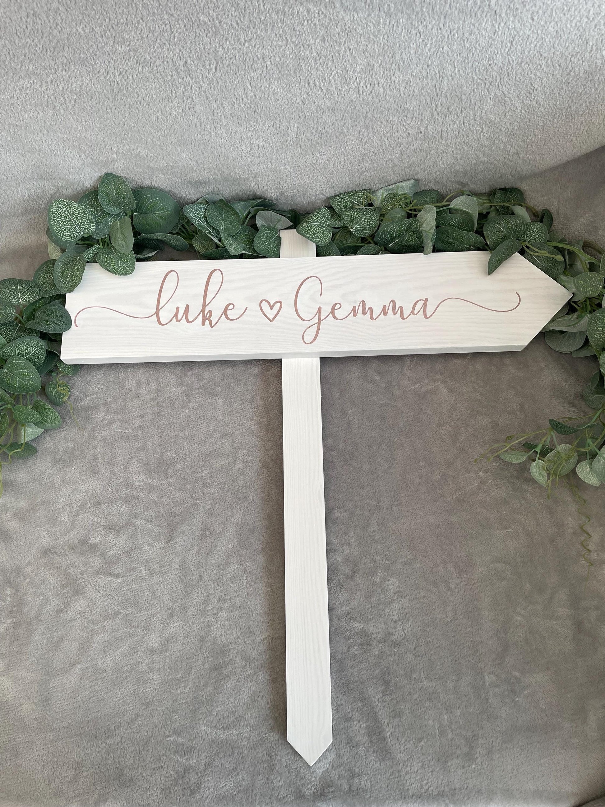Offer your guests a first glimpse at your wedding theme with a direction sign. Adding a personal touch outside the venue or signposting inside the venue, I can match colours and fonts to your current stationery.