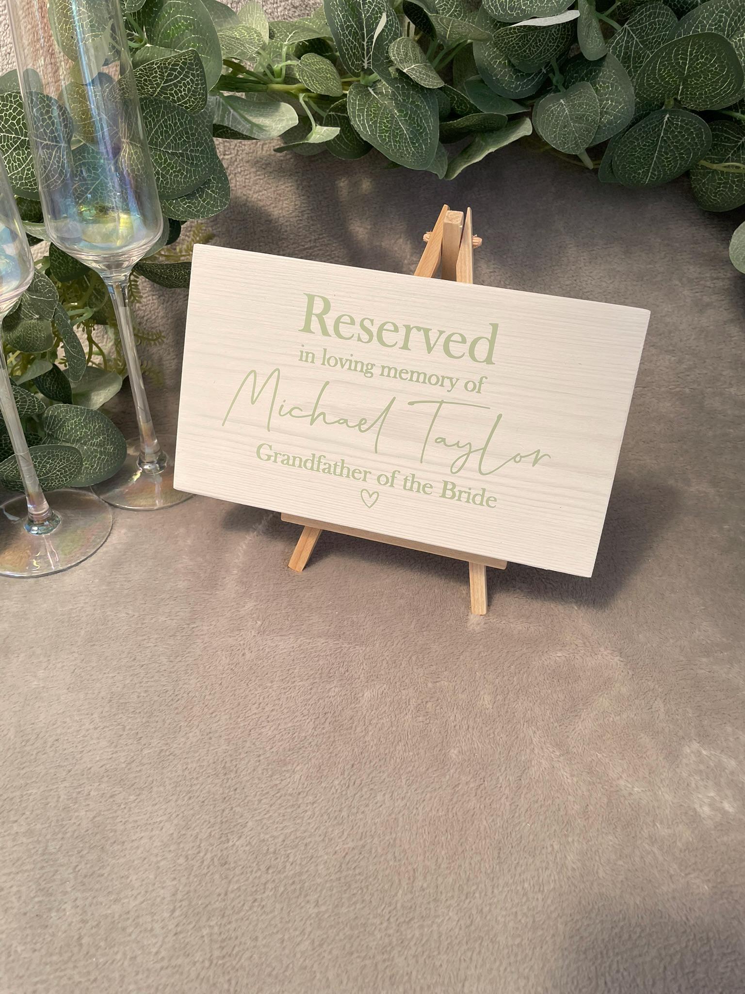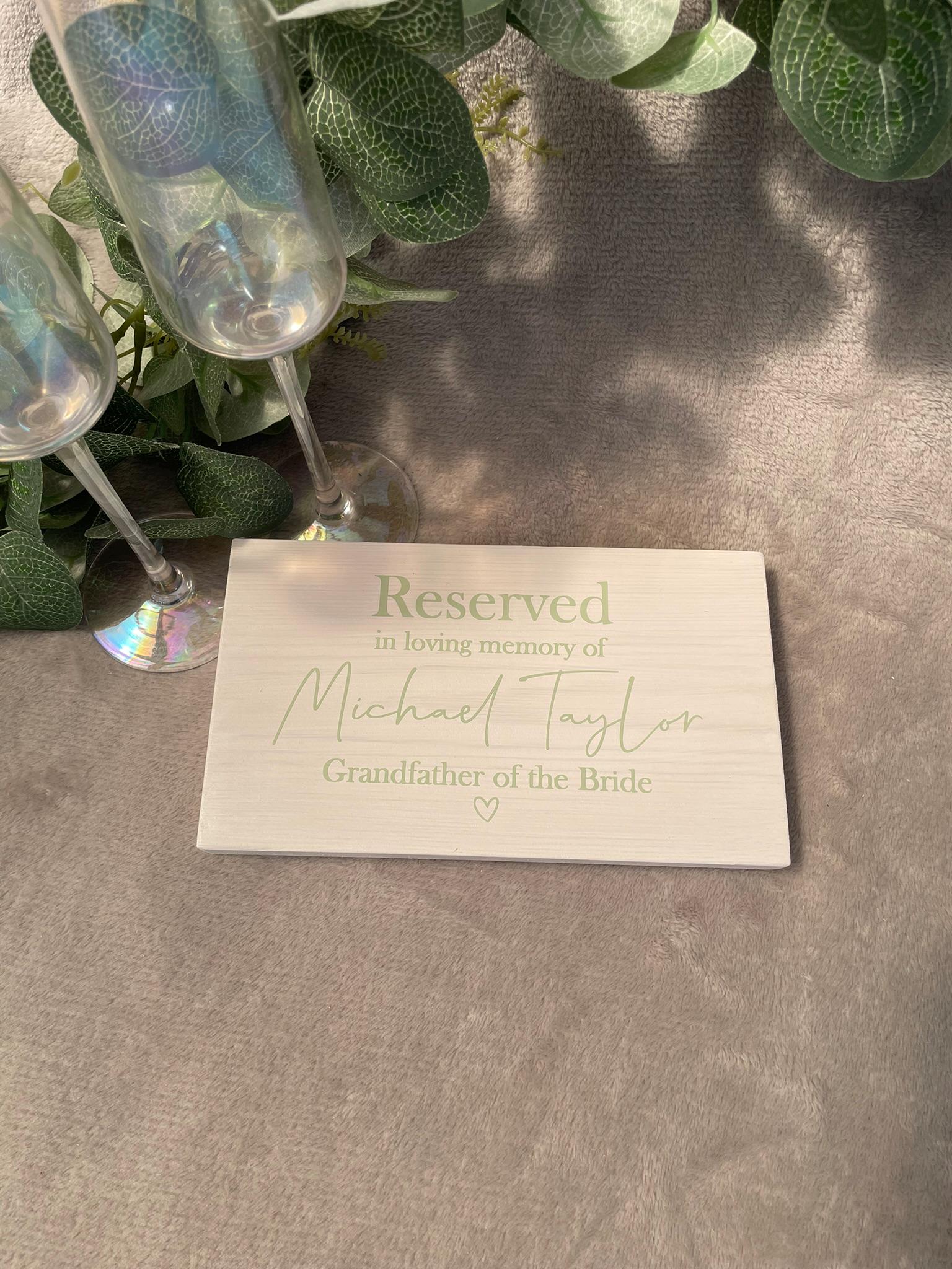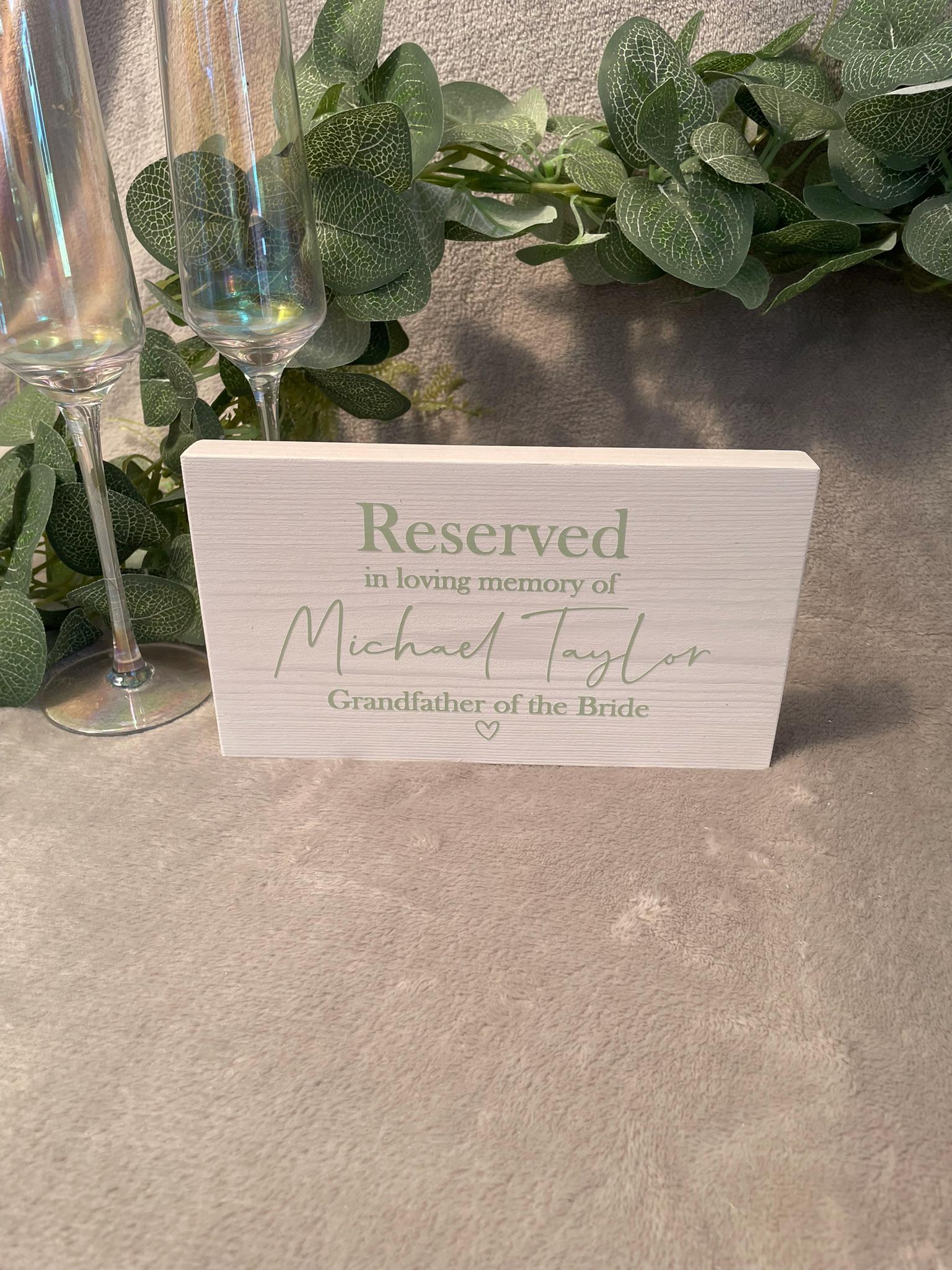 Wooden WHITE memorial reserved chair sign, wedding ceremony decor.